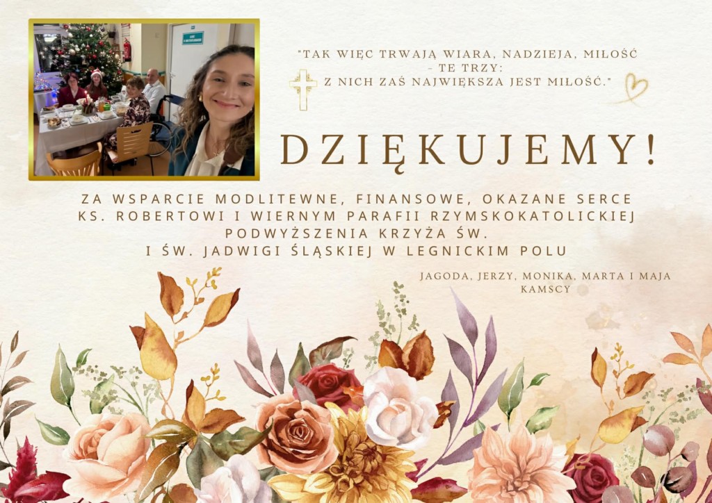 4. Pora podsumować naszą akcję wsparcia Jerzego Kamskiego z Kunic.. Przez cały czas Adwentu udało nam się zebrać do skarbon kwotę: 7.294,67 zł i 20 euro. Bardzo serdecznie dziękuję wszystkim osobom, które przekazały swój konkretny dar serca na pomoc w walce o samodzielność pana Jurka; dziękuję za Waszą wrażliwość, za Wasze współ-odczuwanie z drugim człowiekiem.